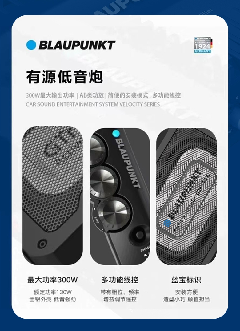 德國藍寶大眾專(zhuān)車(chē)專(zhuān)用喇叭,前門(mén)安裝德國藍寶大眾專(zhuān)車(chē)專(zhuān)用8寸兩分頻喇叭后門(mén)選擇同品牌大眾專(zhuān)車(chē)專(zhuān)用6寸兩分頻喇,玻纖振膜,最大承受功率 120W,立體環(huán)繞,高端大氣、無(wú)損安裝、即插即用